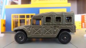 まず、感じた事は大きいです。ハマーH2並みに大きいです。そして、ゴツゴツしたイメージがあります。カラーリングはこう言った車両によく見られる定番のグリーンカラーです。